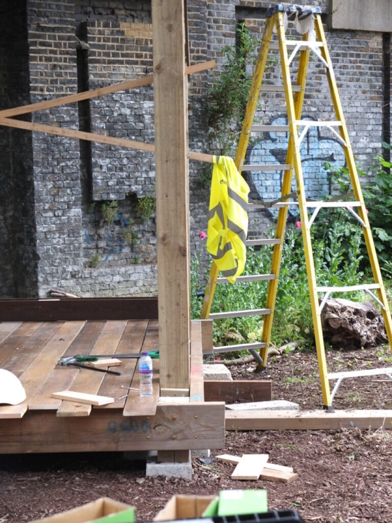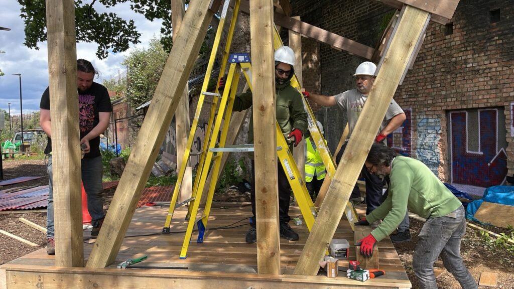 The second stage of the project included the design and construction of a small stage which has been designed and built collaboratively by students and farm volunteers. The built structure, realised with reclaimed materials, will remain on site to host the event and work as a prototype to support the exchange of practical knowledge.